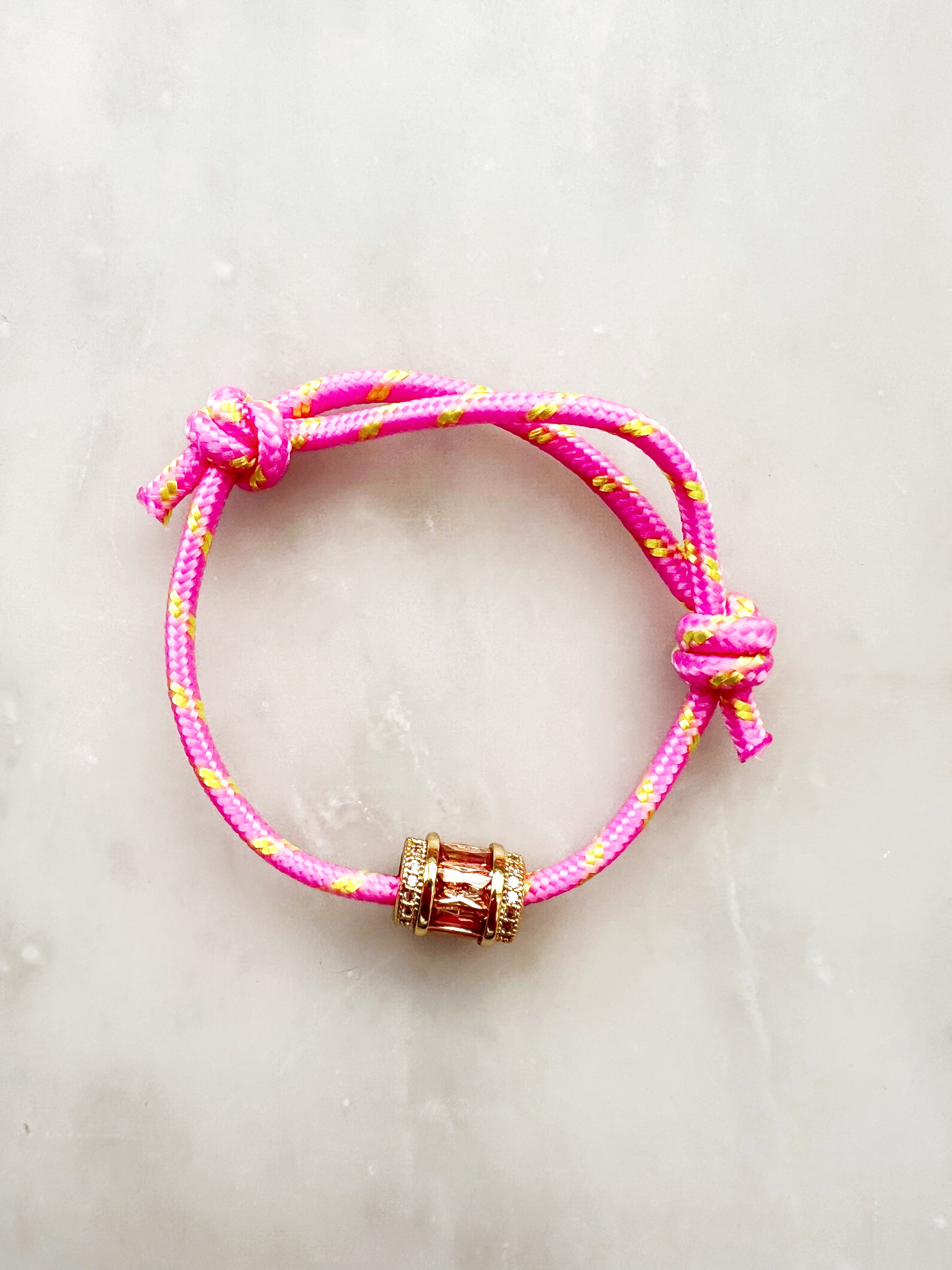 ParaDiamond rondelle bracelet, features a 12mm pink rondelle charm bead with Austrian crystals on 3-4mm cord.